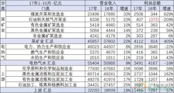 17年1-10月份,全國(guó)規(guī)模以上工業(yè)企業(yè)實(shí)現(xiàn)利潤(rùn)總額62450 8億元,同比增長(zhǎng)23 3%,增速比1-9月份加快0 5個(gè)百分點(diǎn)。其中采礦業(yè)實(shí)現(xiàn)利潤(rùn)總額4111 6億元,同比增長(zhǎng)4 1倍;制造業(yè)實(shí)現(xiàn)利潤(rùn)總額54847 8億元,增長(zhǎng)20 1%;