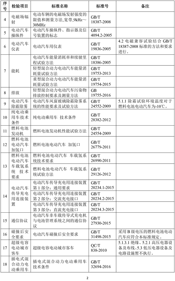 2.新能源汽車產(chǎn)品專項檢驗標準目錄