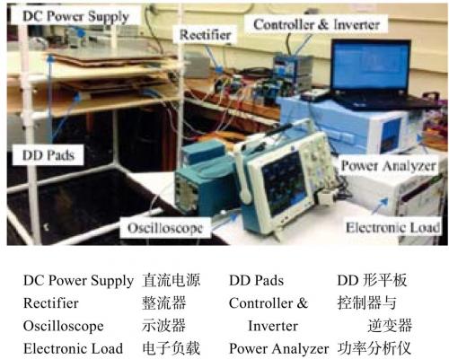 美國密歇根大學-迪爾伯恩校區(qū)(University of Michigan Dearborn)的 Chunting Chris Mi 教授團隊則分別在 2014 年和 2015 年設計并制作了單體功率 8 kW 和 5.6 kW 的平板式磁耦合元件,直流到直流傳輸效率均超過 95%[38,60],其實驗裝置如圖 13 所示,該裝置能夠?qū)崿F(xiàn)的功率與頻率的乘積值為目前最大。