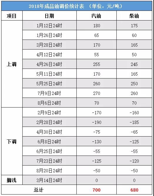 8月20日24時(shí),國(guó)內(nèi)汽、柴油價(jià)格(標(biāo)準(zhǔn)品)每噸均降低50元。這點(diǎn)降幅與此前上漲的幅度相比少得可憐,油價(jià)仍然是漲多跌少。截至目前,2018年國(guó)內(nèi)成品油調(diào)價(jià)“九漲六跌一擱淺”,汽油價(jià)格累計(jì)漲幅為700元/噸,柴油價(jià)格漲幅680元/噸。