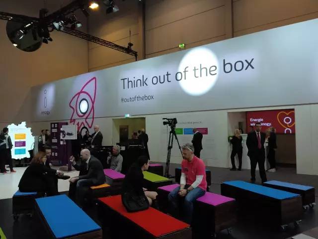 所以,一進(jìn)展會門口,撲面而來就是Innogy大的沒法再大的廣告和展廳:思無疆(think out of box),還有他們費勁心機設(shè)計的被業(yè)界人士統(tǒng)一認(rèn)為丑的很有特色,拽的很有喜感的七彩斑斕不同色系的Logo圖標(biāo)。
