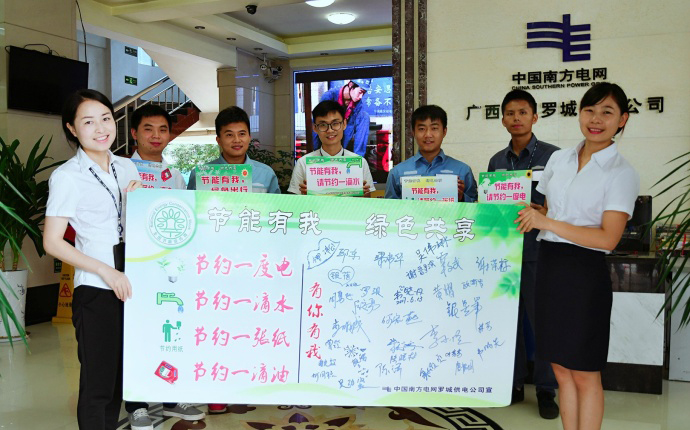 南方電網(wǎng)廣西羅城供電公司組織青年志愿者、黨員自愿者服務隊,開展以“節(jié)能有我,綠色共享”為主題的倡導低碳健康生活的宣傳活動。