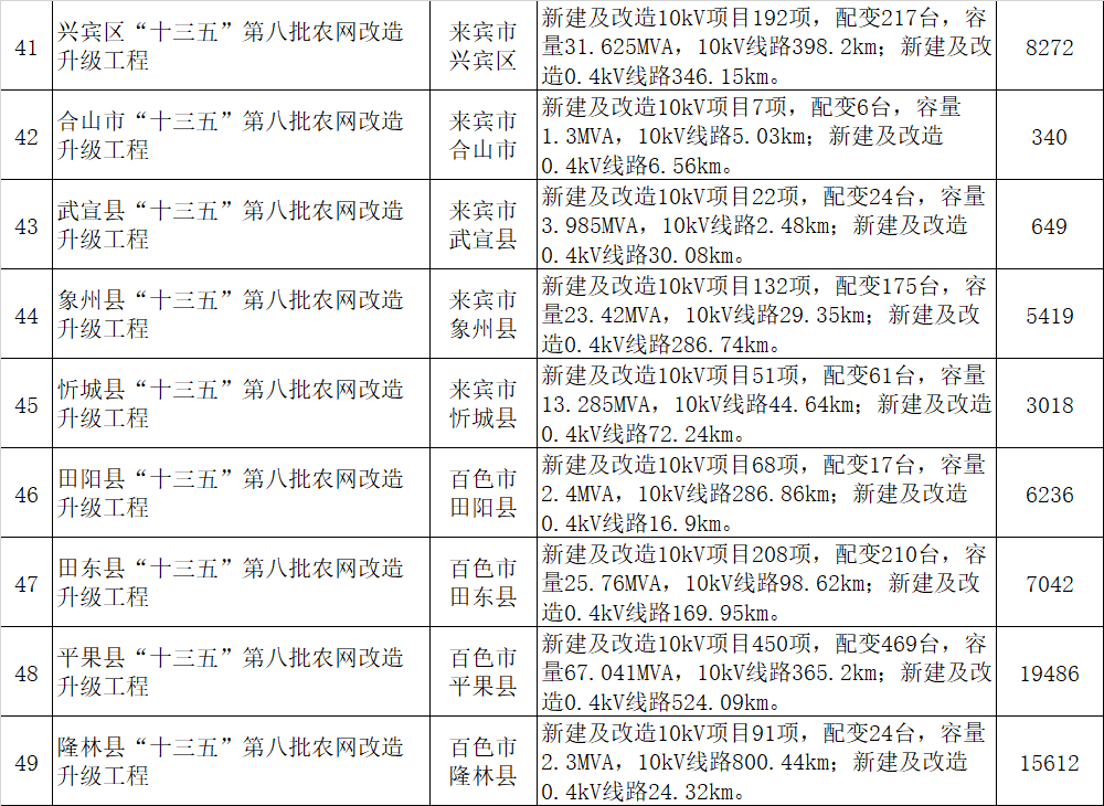 65.廣西電網(wǎng)有限責(zé)任公司“十三五”農(nóng)網(wǎng)改造升級工程項(xiàng)目(第八批)匯總表