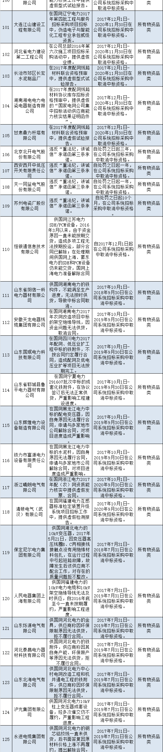 國(guó)家電網(wǎng)公司關(guān)于供應(yīng)商不良行為處理情況的通報(bào)(2017年12月)