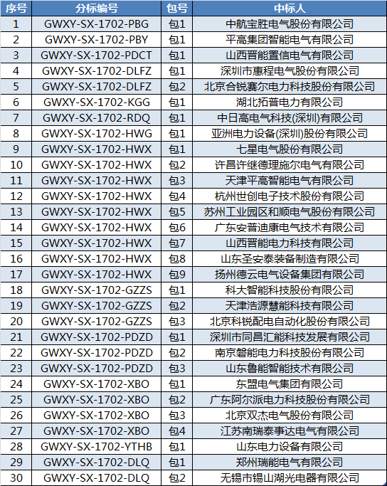 國(guó)家電網(wǎng)公司山西省電力公司2017年第二次配網(wǎng)設(shè)備協(xié)議庫(kù)存貨物招標(biāo)活動(dòng)中標(biāo)結(jié)果公告