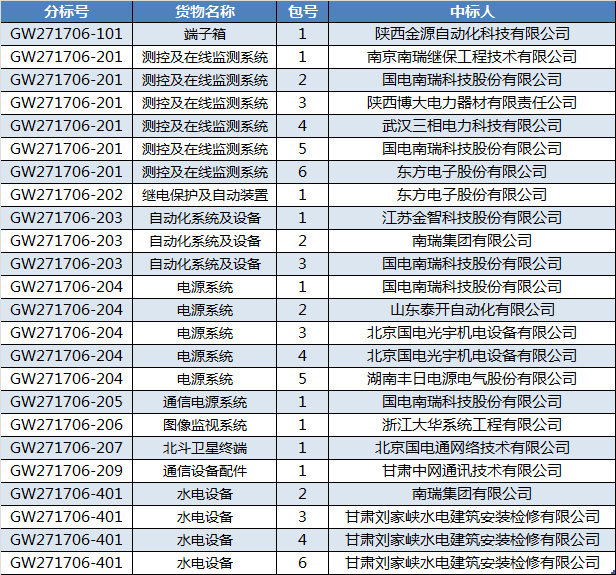 國(guó)網(wǎng)甘肅省電力公司2017年第六次物資招標(biāo)采購(gòu)中標(biāo)公告(招標(biāo)編號(hào):GW271706)