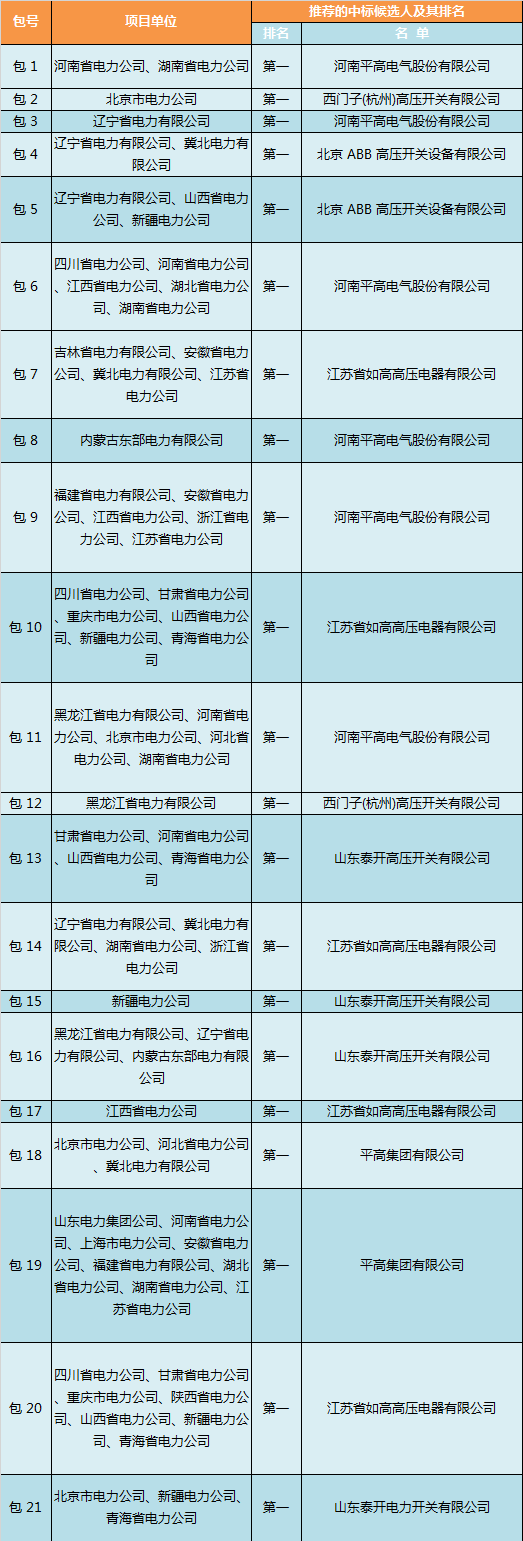 2017年國(guó)網(wǎng)第六次變電設(shè)備—斷路器中標(biāo)侯選人名單