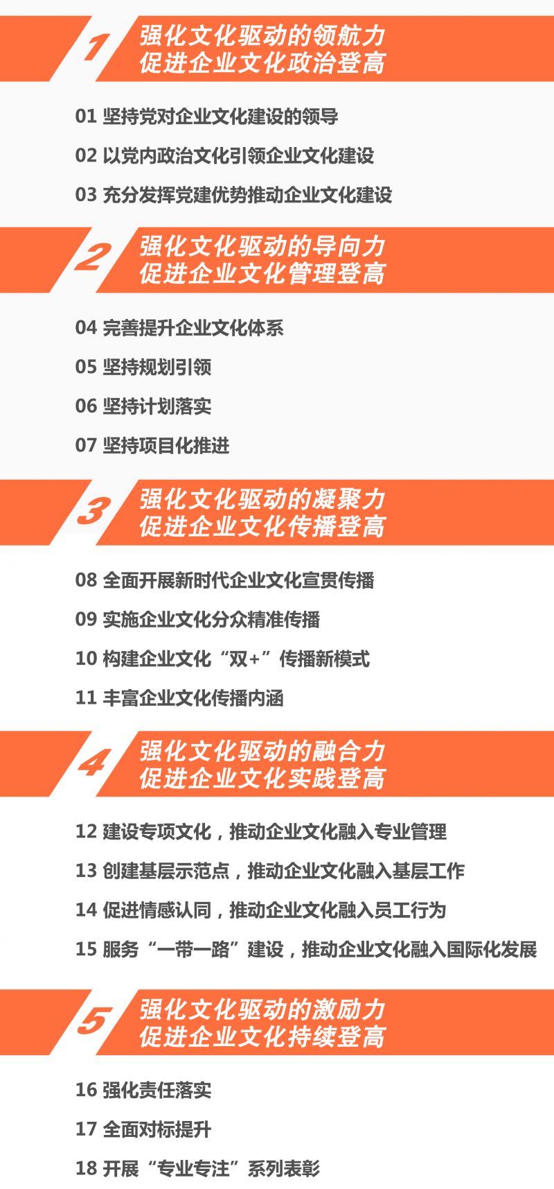 國(guó)家電網(wǎng)公司黨組研究決定,利用2018~2019年兩年時(shí)間,實(shí)施“旗幟領(lǐng)航·文化登高”行動(dòng)計(jì)劃,具體分為企業(yè)文化建設(shè)18項(xiàng)重點(diǎn)任務(wù)。